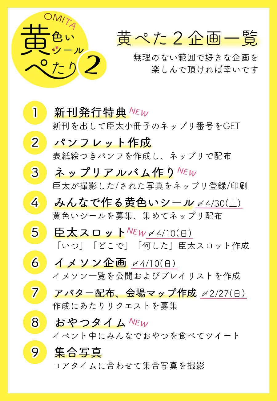 臣太WEBオンリー「黄色いシールぺたり2」2022年5月3日(火祝) 開催