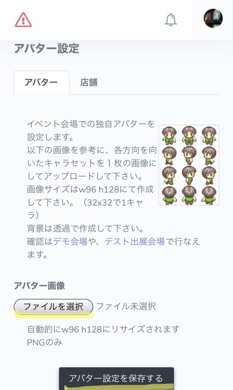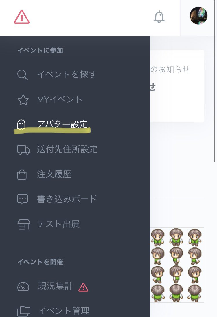 メニューの「アバター設定」からオリジナルのアバターを設定することができます。