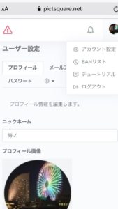 右上のアイコン -> 「アカウント設定」 -> 「プロフィール」