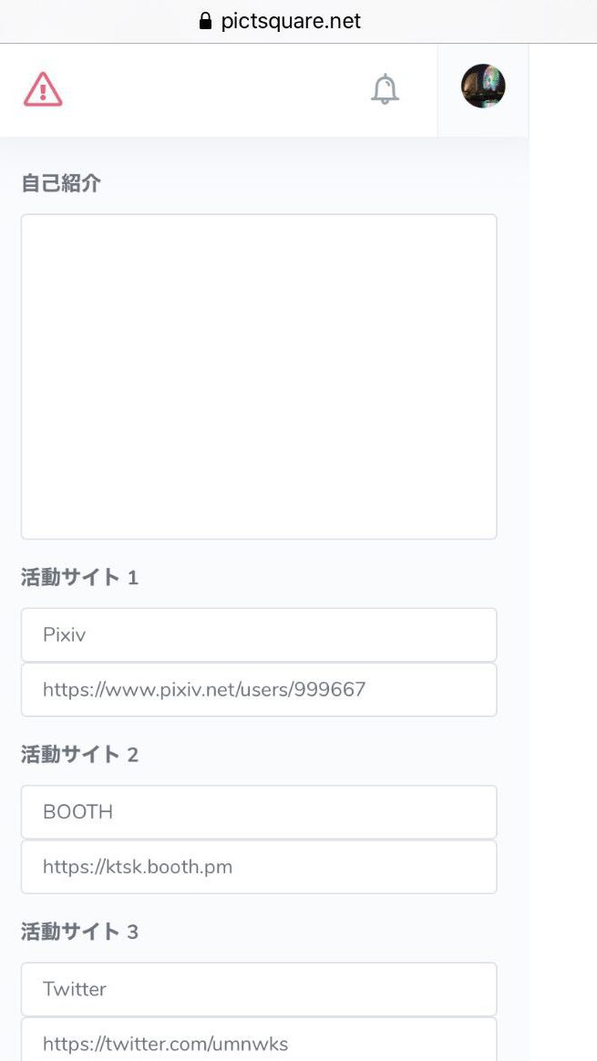 会場内では他の人のプロフィールを見ることができるため、もしTwitter等があれば設定しておくのがオススメです! リンクは3つまではることができます。