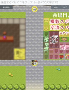 マップ上下にある通常の出入口以外から退出すると、会場内にアバターが残ってしまいます。 なるべく通常のルートで退出をお願い致します。
