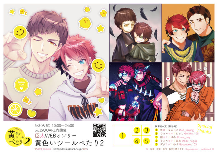 表紙絵に臣太および派生CPの絵を描いて下さる方を募集しました。